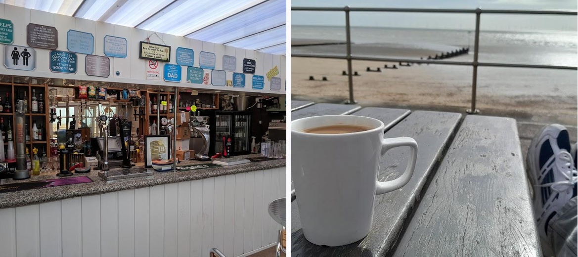 A proper old cafe with licensed bar right on the sea front. Not an avocado or quinoa in sight. Friendly staff and customers, and dog friendly too. Surprisingly excellent coffee. Unbelievably good value - £4 for a bacon and egg bap and a coffee. And open in the middle of January. Yeah, it's a bit rough around the edges but that only adds to the enjoyable experience.